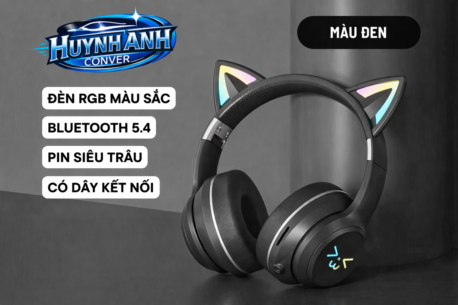 Tai nghe Bluetooth tai mèo RGB phiên bản mới mang phong cách dễ thương – hiện đại, kết hợp công nghệ Bluetooth 5.4 cho kết nối nhanh, ổn định và âm thanh rõ ràng. Sản phẩm phù hợp cho học online, nghe nhạc, xem phim, chơi game và làm quà tặng cực xinh.